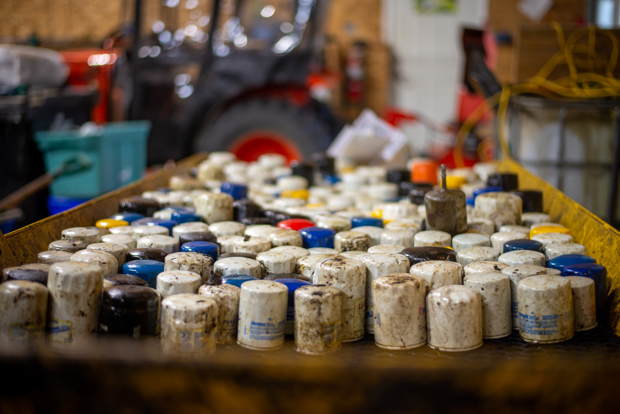 Used oil filters are drained to recover the used oil. The metal filters are then properly disposed of, keeping them out of local landfills.